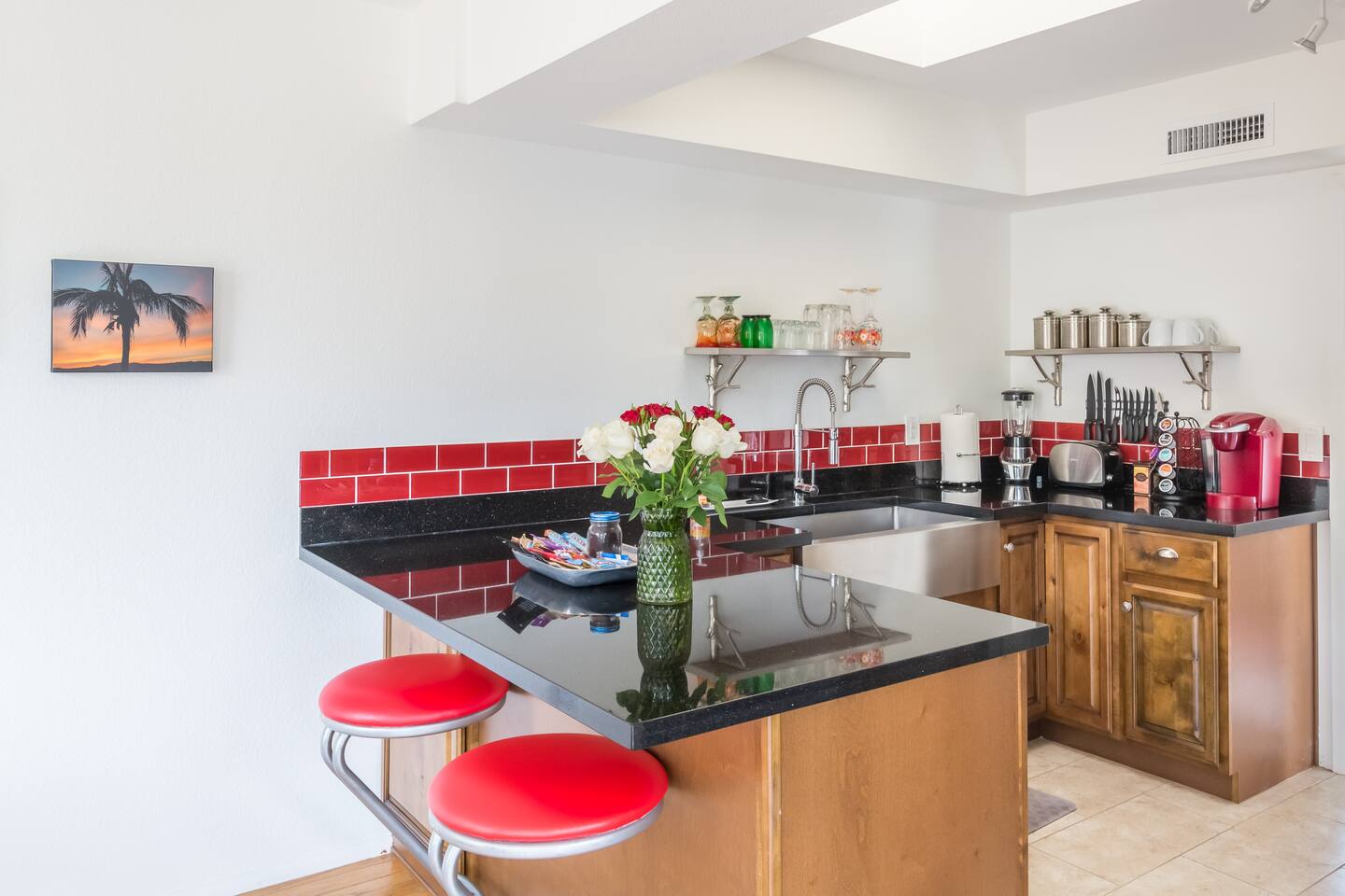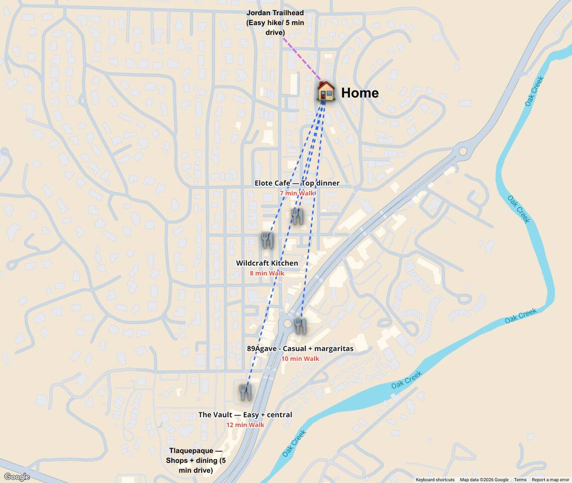 We were so lucky to find this place! It was PERFECT for my husband and me! Walkable to uptown shops and restaurants, beautiful red rock views on 3 sides, and a very quiet neighborhood. The kitchen was well-stocked if we chose to cook, the grill was a nice addition, and we enjoyed the fireplace every night! Check-in for us was late, and it was dark already. But the house lights were on, there was music playing on the tv, and fresh flowers on the counter. It felt like coming home. Wonderful stay and we will always choose this place when we come back to Sedona!