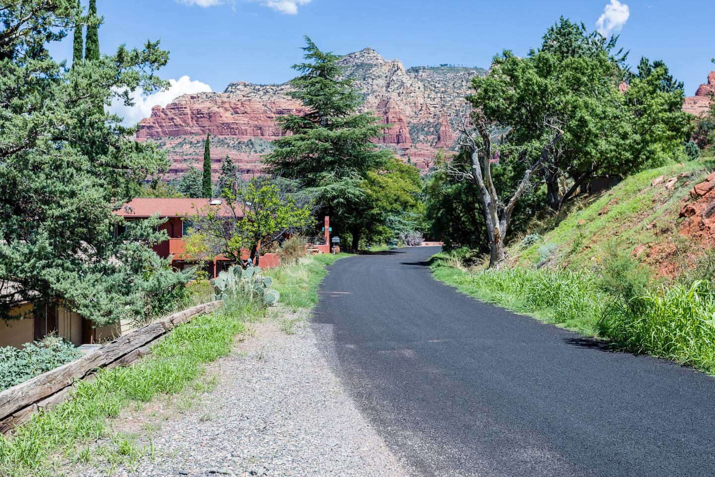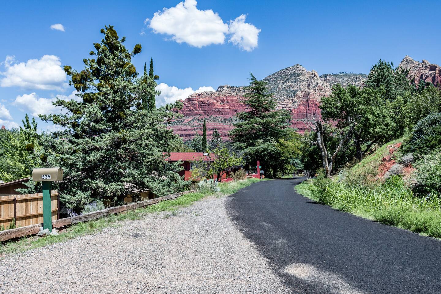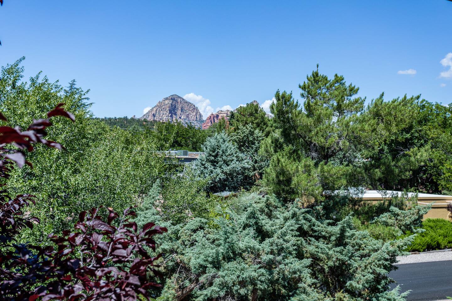 This top-floor retreat sits in one of Sedona's best positions — far enough from the noise to feel peaceful, close enough to walk to Uptown's restaurants, galleries, and the Arts Center in five minutes. The views from the two private balconies are the real selling point: unobstructed Red Rock vistas that are just as good with morning coffee as they are at sunset.