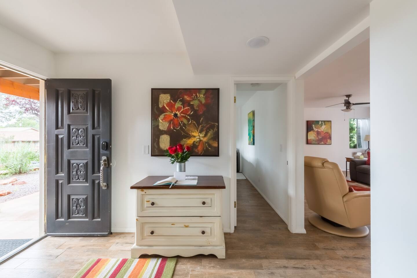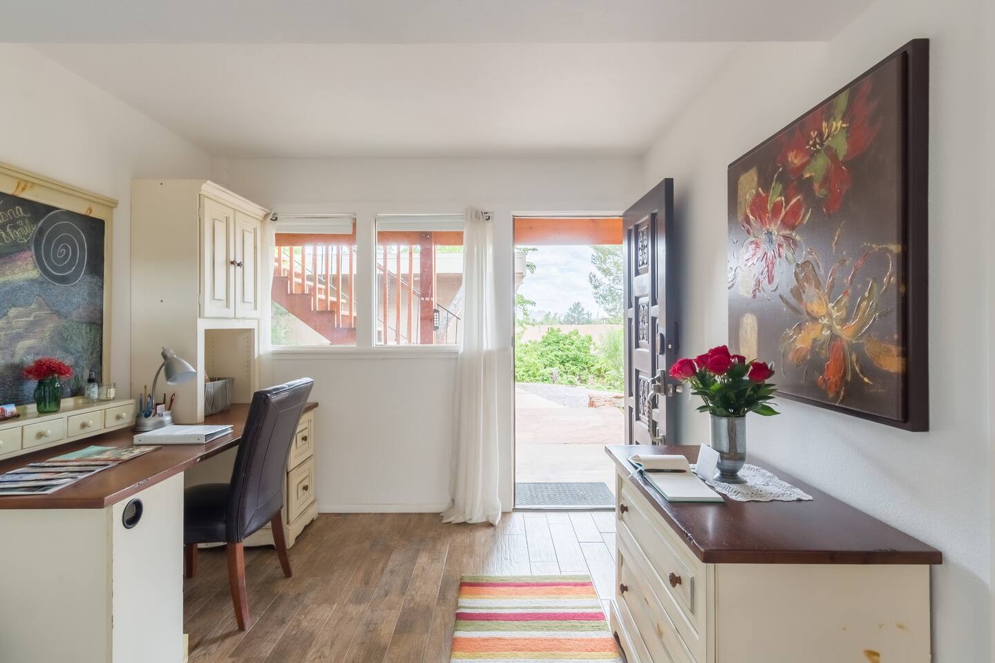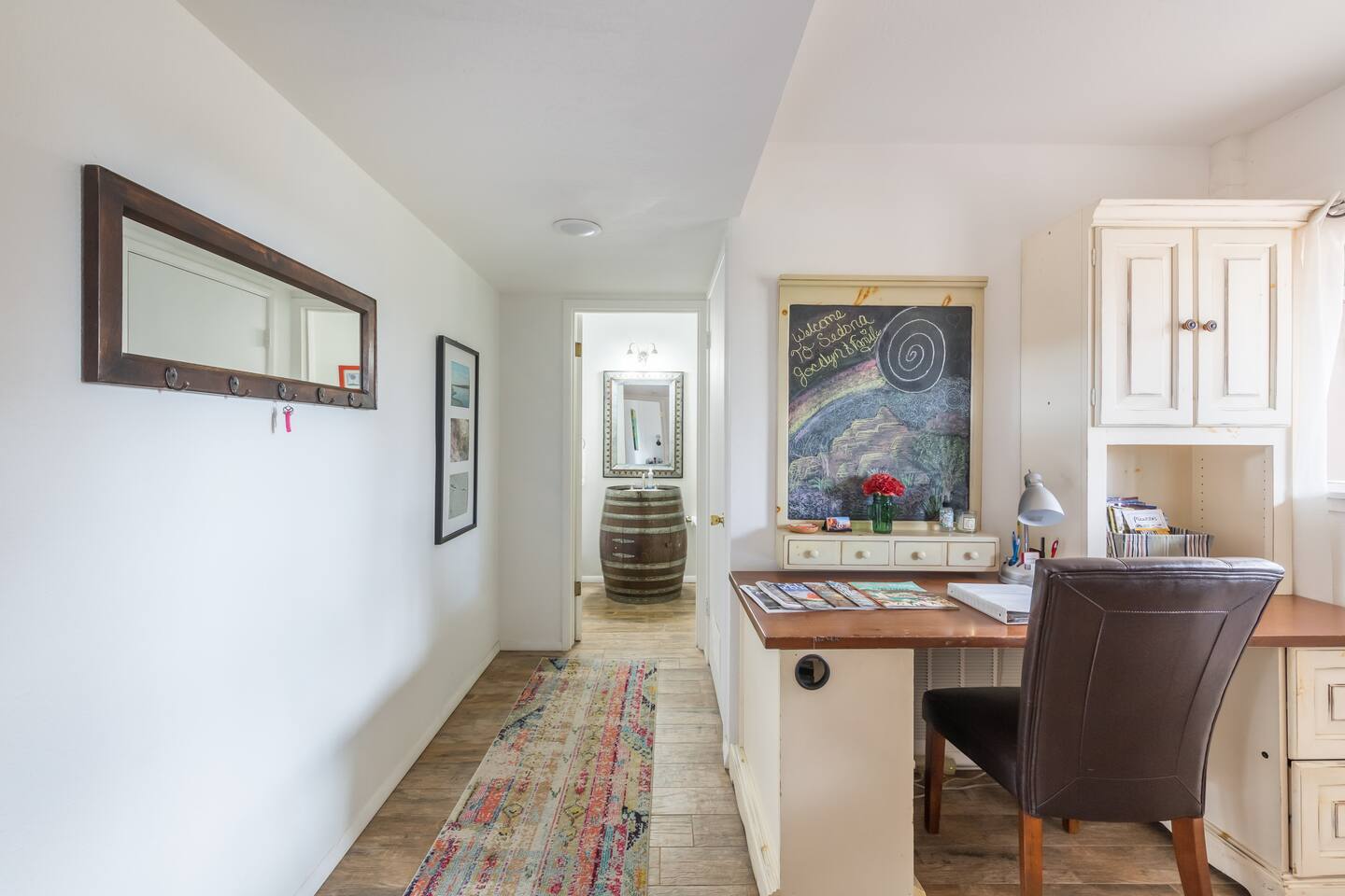 A bright, pet-friendly 1BR in the heart of Uptown Sedona — five minutes on foot from the best restaurants, galleries, and Red Rock views from two private decks. Thoughtfully stocked, genuinely comfortable, and an easy base for everything Sedona does best.