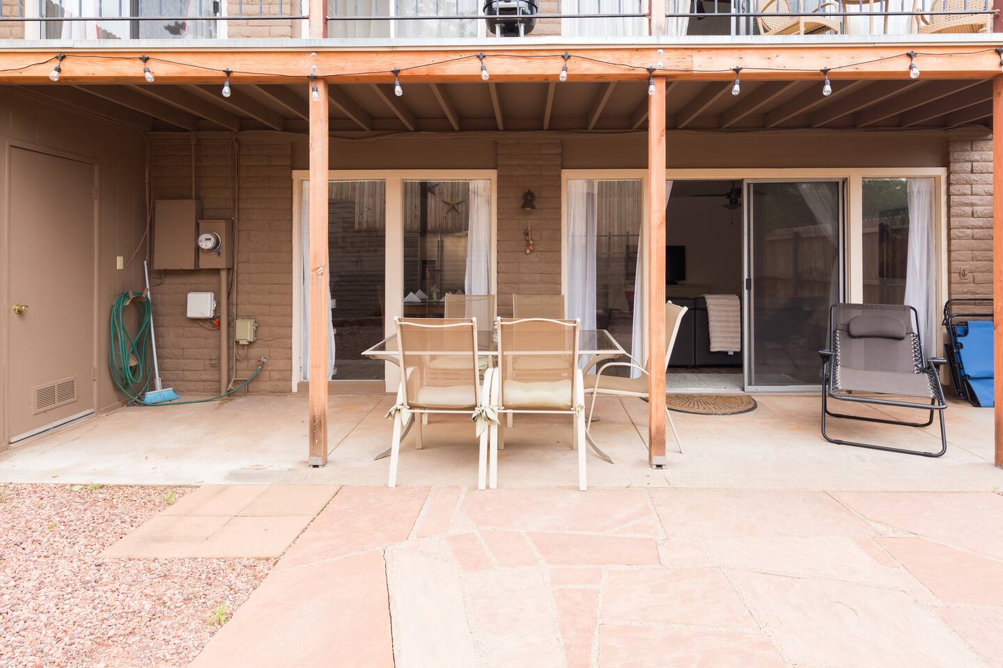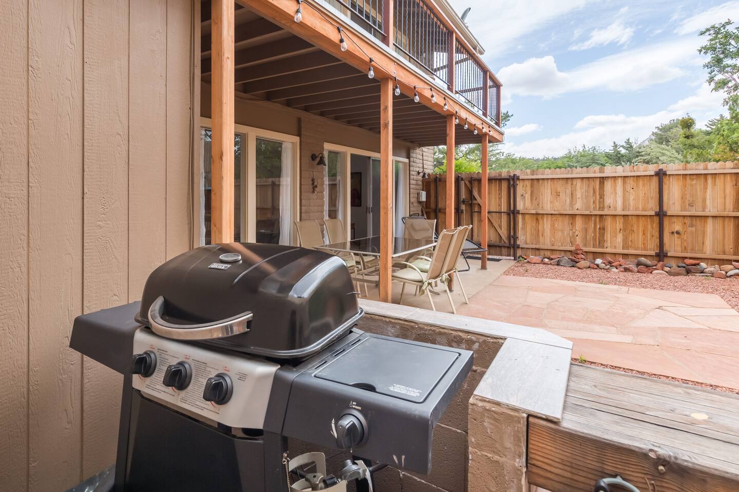This bottom-unit retreat sits in a quiet neighborhood just a short walk from Uptown Sedona's main strip — over 20 restaurants, galleries, the Sedona Arts Center, and Tlaquepaque all within easy reach on foot. Red Rock views from two decks, a fully fenced private courtyard, and a home that's genuinely well set up from the moment you arrive.